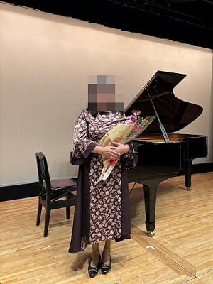 鈴木圭さんの著書『3つのシルエットで作る永遠のワンピース』に掲載されているデザインに一目惚れされ、ピアノの発表会用に制作されました。